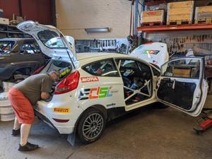 23/7-20 Inspektion av nytillskottet.Backe kontrollerar Fiestan och förbereder den för en test på Dellgrens Fastigheters gårdsplan.