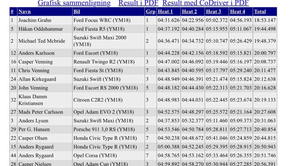 Första tävlingen på länge och dessutom en jag tänkte fullfölja !!! Förutsättningarna på topp, regn på natten och uppehåll och sol på dagen. Började med mjuka däck bak och medium fram då banan var sådan att det var trånga chikaner och allmänt trixig. Det gynnade oss och vi satte fullfart från början och efter 2st körda heat låg vi 6-7:a totalt. Solen och vinden gjorde sitt och vi beslutade att gå upp till medium även bak. Satte press på de danska toppåkarna som låg precis framför oss och de blev nervösa när vi knappade in på dem. Det slutade med att de körde fel och fick tids tillägg och vi susade upp och slutade på en fin 4:e plats totalt och 3:a i klassen. De två som var före mig i klassen var mina landsmän Håkan Oddshammar och Jocke Grahn där Grahn var den som stod överst på pallen.